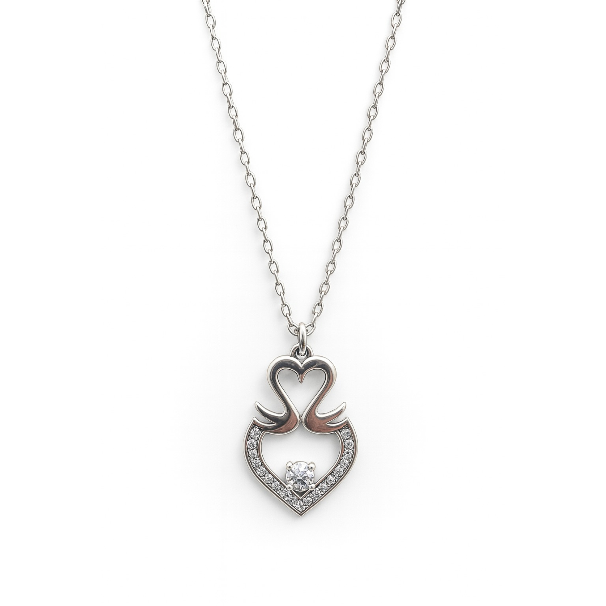 Swan-Inspired Sterling Silver Heart Pendant Necklace