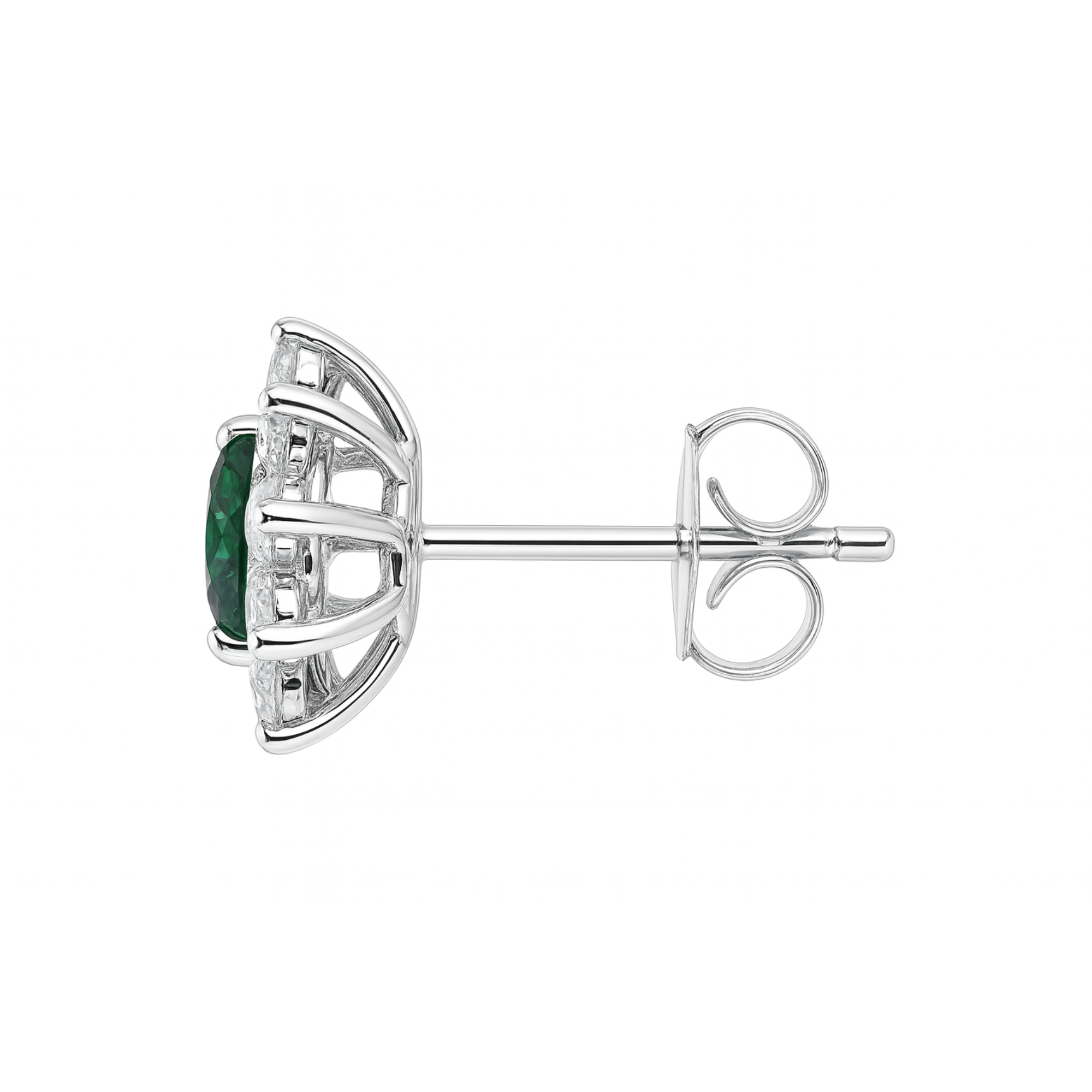 silver Luxury Green Emerald & Diamond Halo Stud Earrings