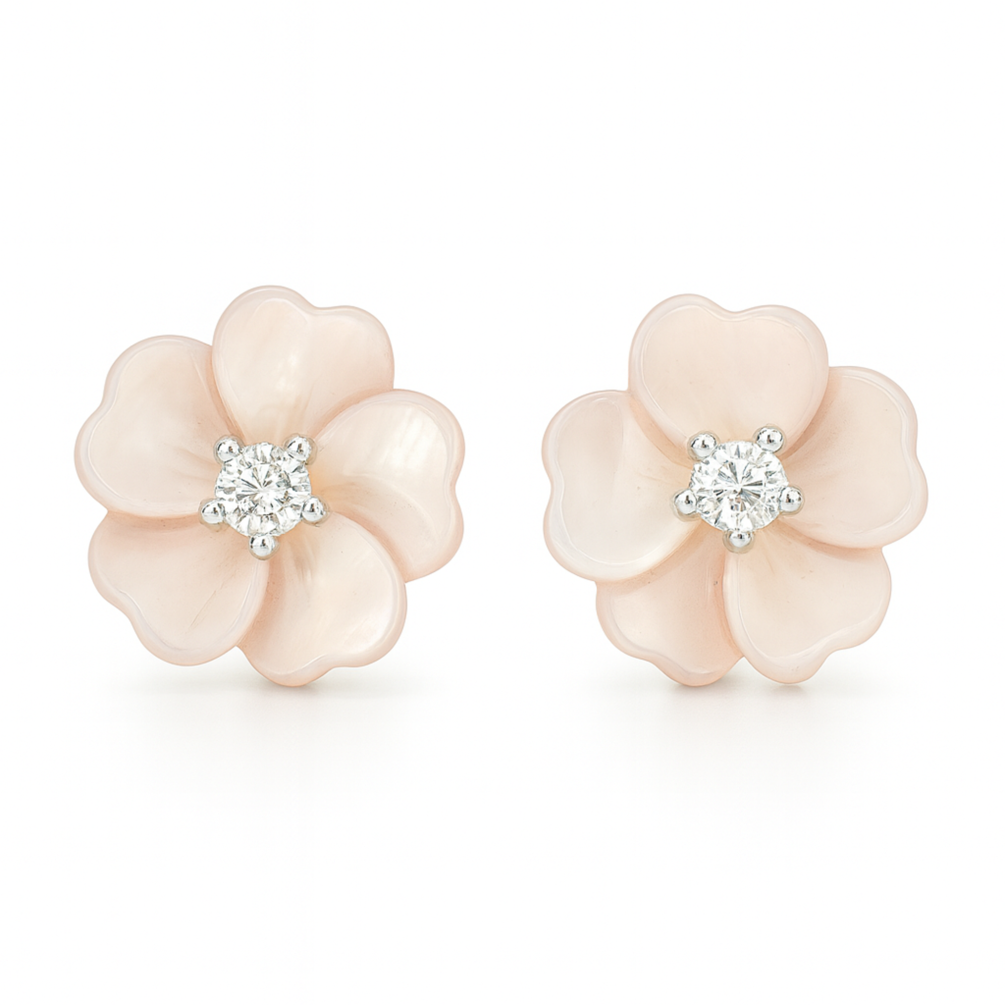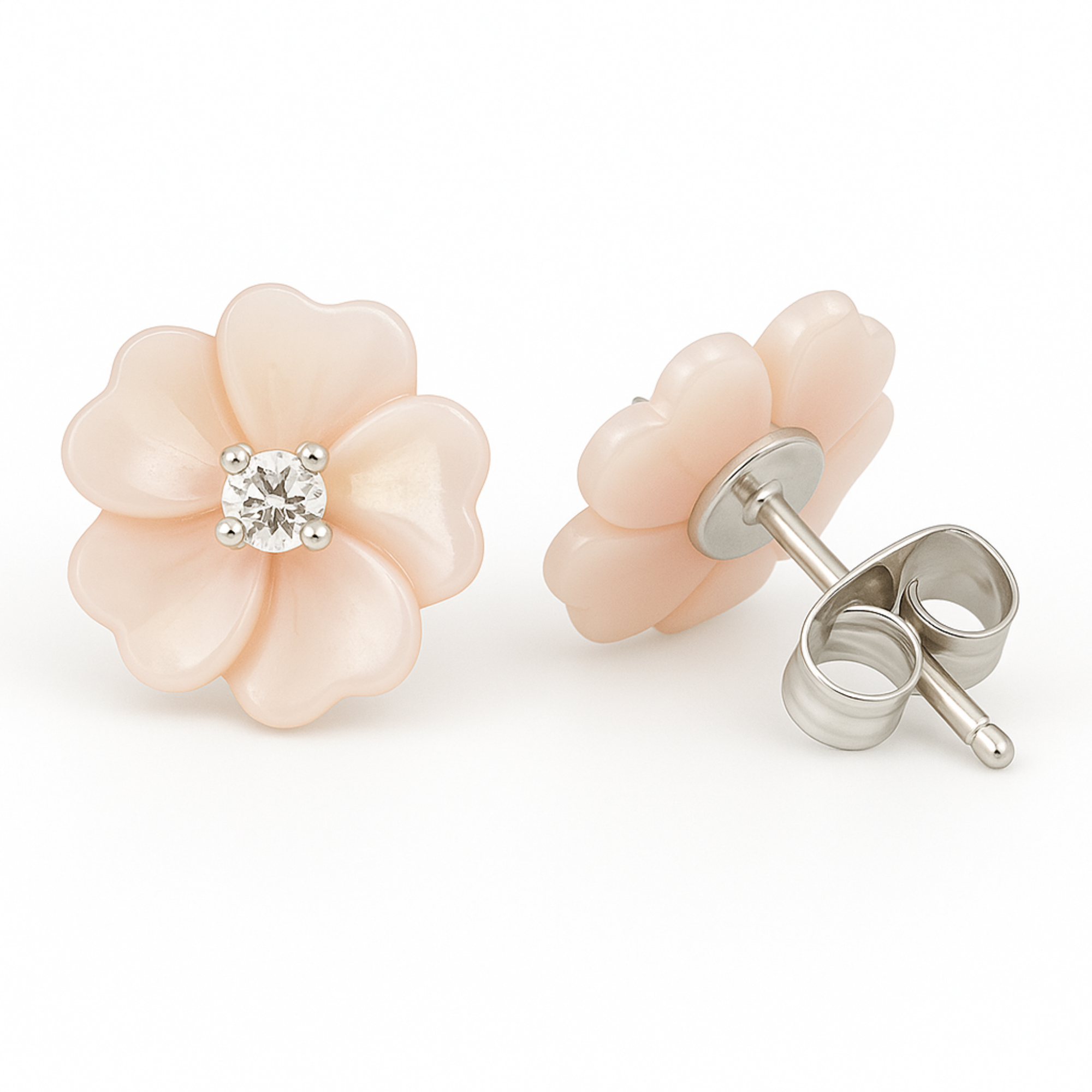 Silver delicate Pink Floral Stud Earrings with Shimmering Center Stone