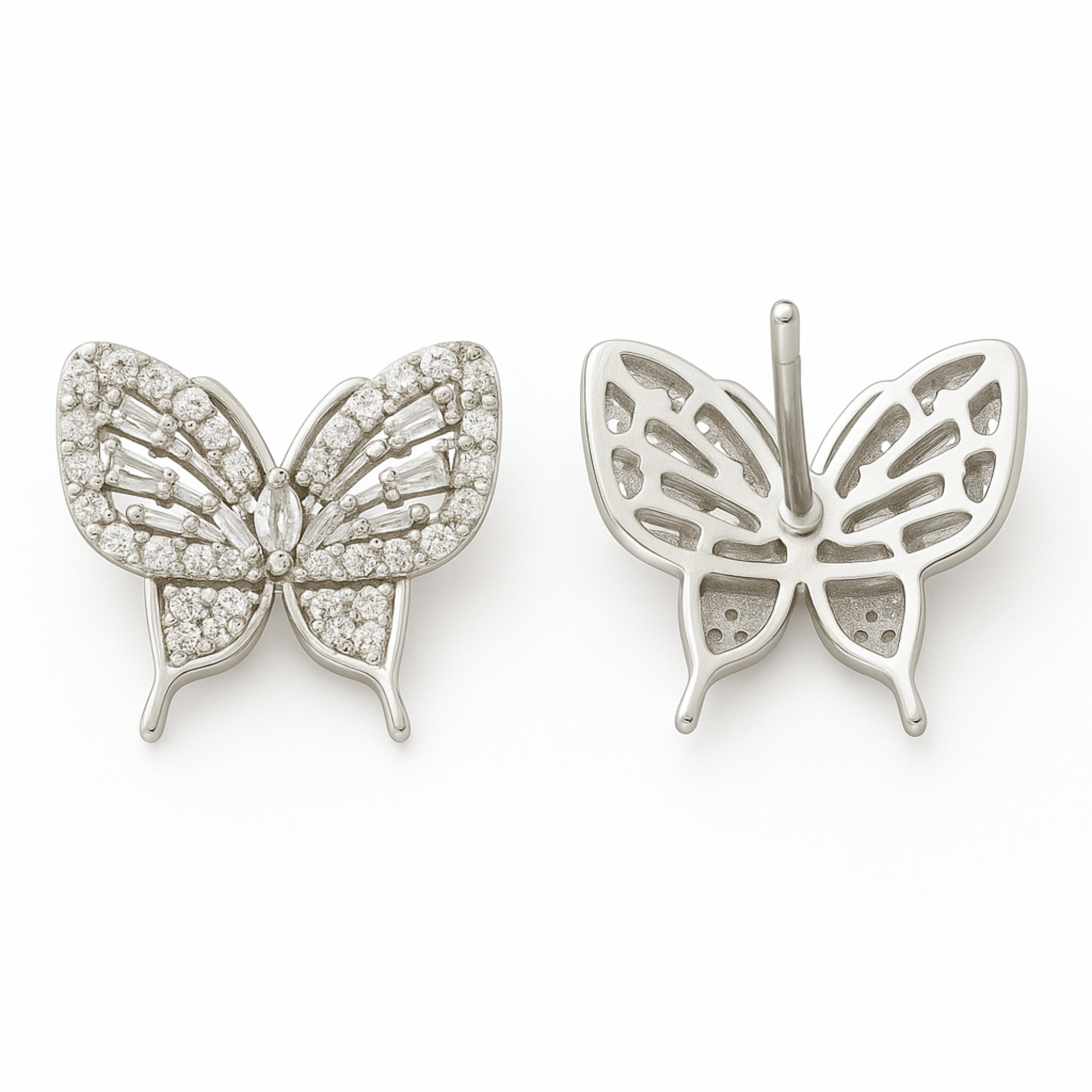 925 Sterling Silver Butterfly Earrings – Stud Design with Sparkling CZ Stones