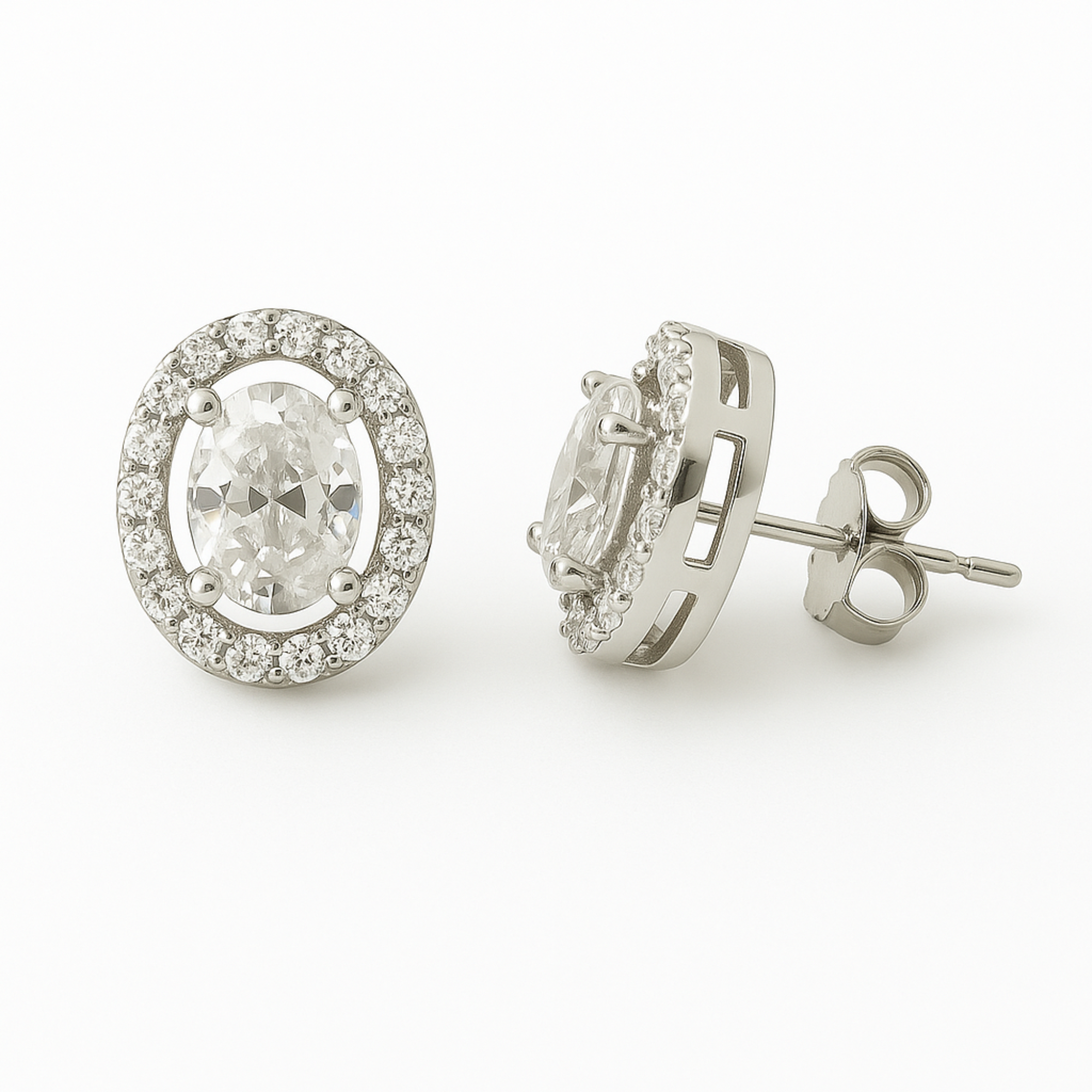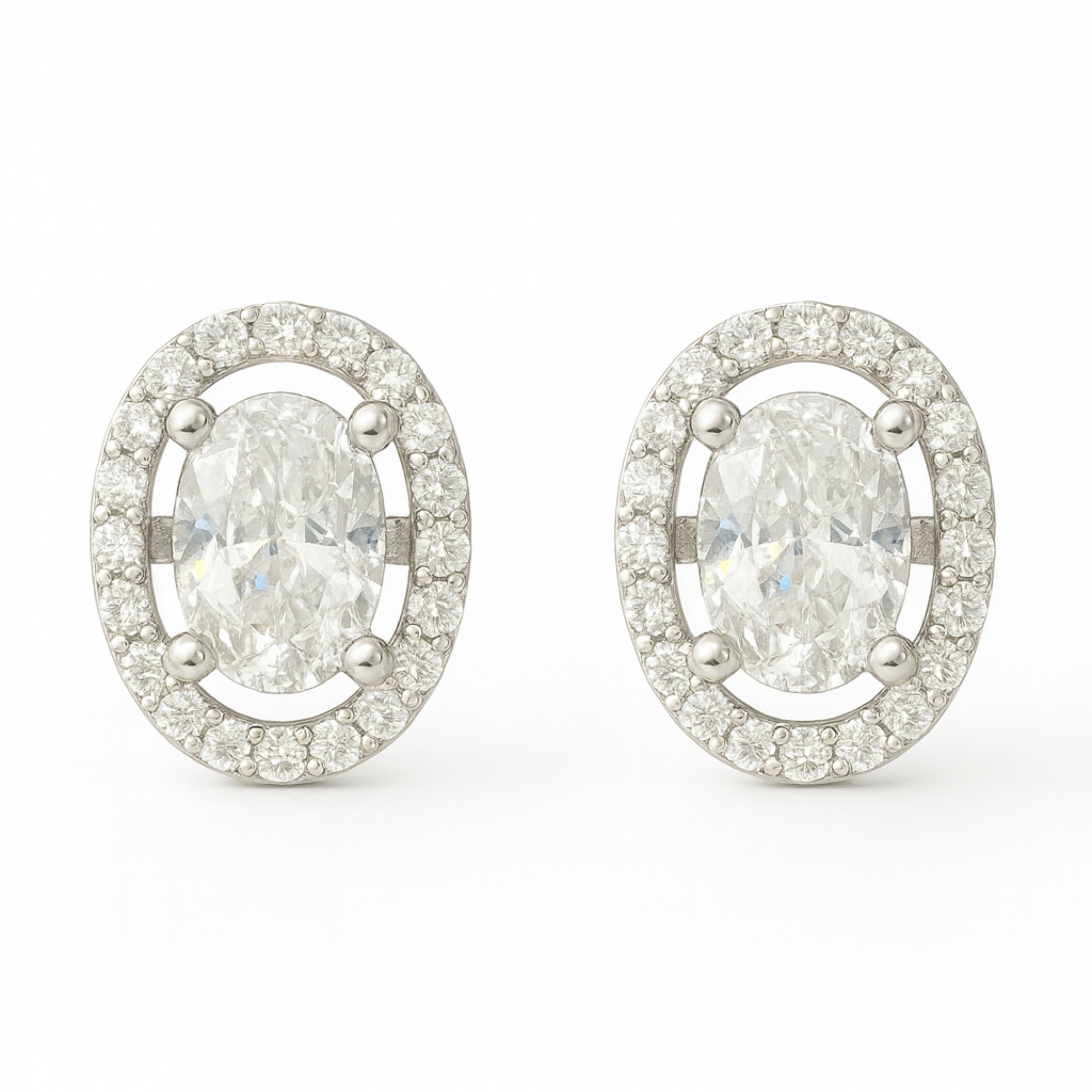 925 Sterling Silver Oval Halo Stud Earrings with Brilliant CZ Stones