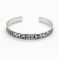 Make a bold statement with this Men’s Sterling Silver Kada, expertly crafted to reflect power, style, and timeless tradition. Designed for the modern man, this open-cuff kada features the iconic Greek Key (Meander) motif—a classic symbol of infinity, resilience, and strength—deeply engraved along the entire band for a bold, architectural appeal.